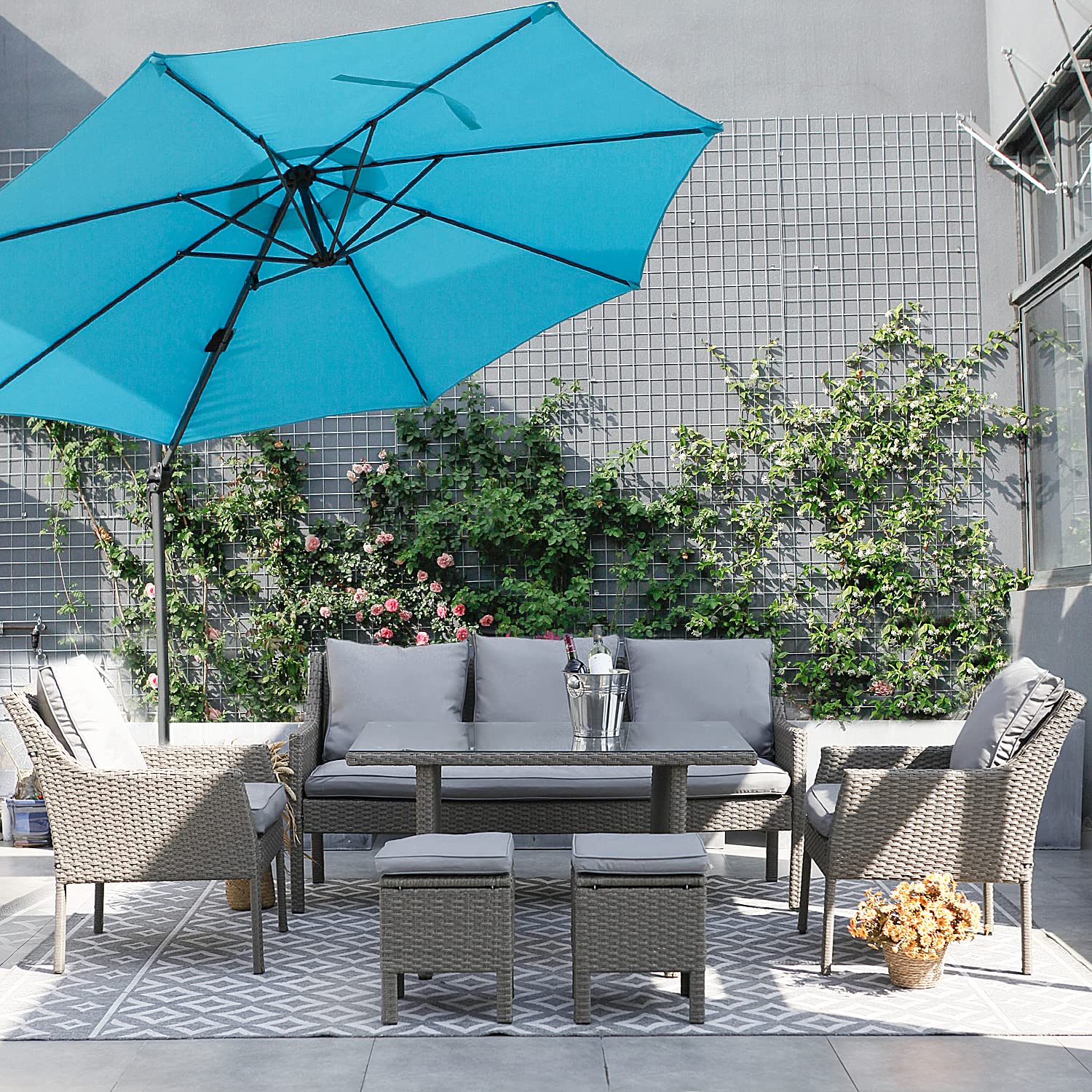 NEW Grey Rattan Corner Set & 3 Stools