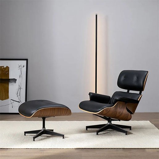 Ergonomic PU leather upholstered recliner with Ottoman style, home office chair, walnut veneer