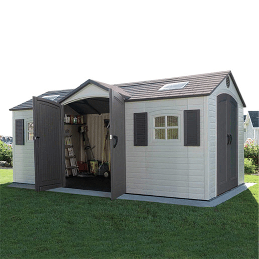 Lifetime 60079 Outdoor Storage Dual Entry Shed, 15 x 8 ft, Desert Sand