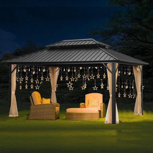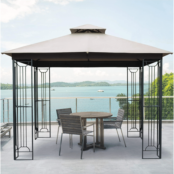 10x10 Outdoor Gazebo for Patios Canopy for Shade and Rain with Corner Shelves, Soft Top Metal Frame for Lawn Backyard and Deck, 99% UV Rays Block, CPAI-84 Certified, Beige