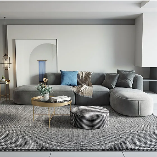European style wood legs upholstery reclinable 3 seater modern gray fabric sectional couch living room sofa set with chaise