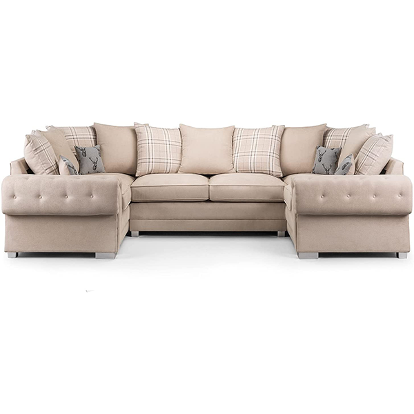 Honeypot - Verona Grey Fabric Corner Sofa - 3 Seater - 2 Seater - Armchair - Footstool (U Shape Corner)