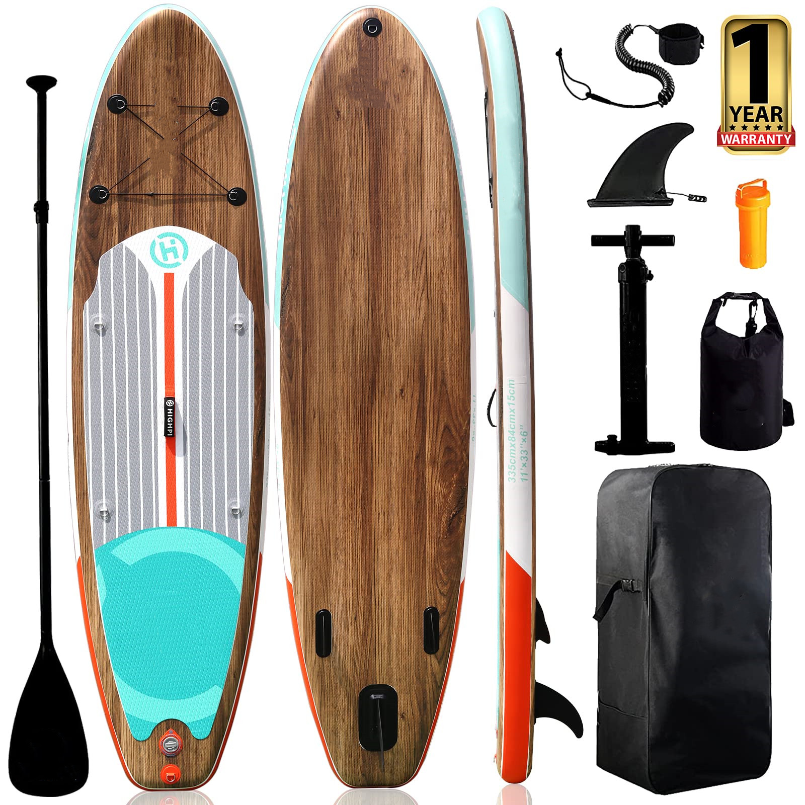 Highpi Inflatable Stand Up Paddle Board 11'x33''x6''W Premium SUP Accessories, Backpack, Wide Stance, Surf Control, Non-Slip Deck, Leash, Paddle and Pump
