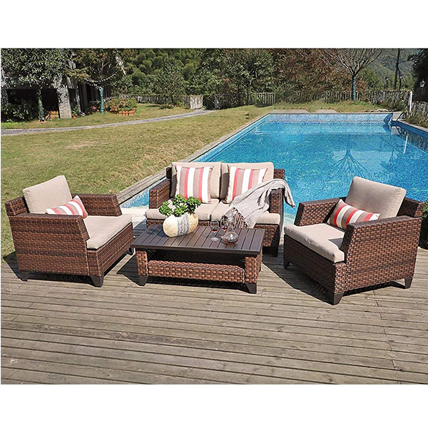 5 pcs New design metal Frame with PE rattan sectional chair and table Patio Furniture dining Set outdoor and indoor