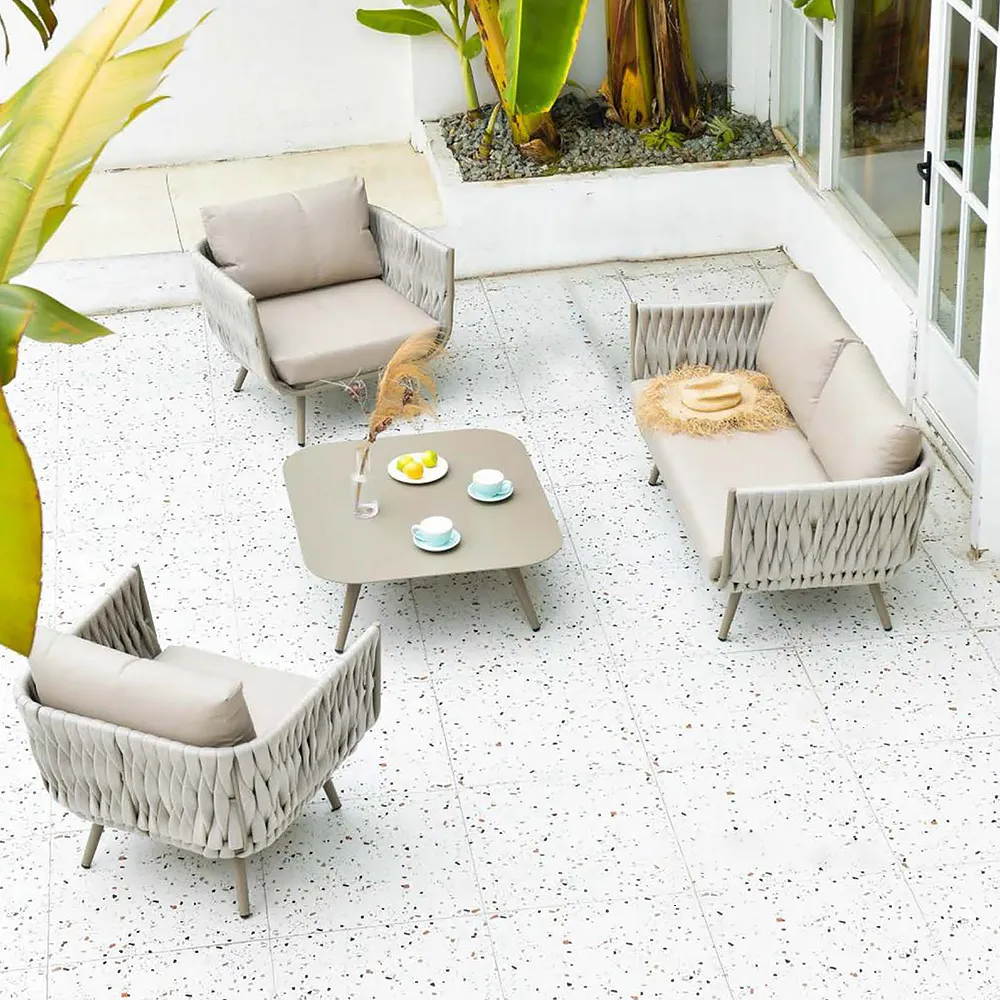 4-Pieces Outdoor Sectional Sofa Set with Webbing Seats and Cushions in Beige