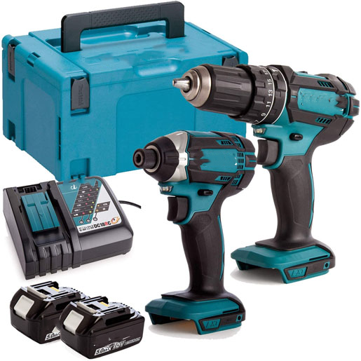 Makita DLX2131TJ 18V 2 x 5.0Ah Li-ion Combi Drill DHP482 + DTD152 Impact Driver Twin Kit Set